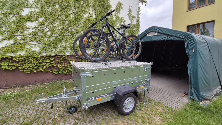Przyczepa kupiona w celach gospodarczo-turystycznych. Czasem ma przewieźć trochę gruzu, ziemi czy desek a czasem graty na camping. Gruz już woziła i zdała egzamin, pierwszy wyjazd turystyczny przed nią (w czerwcu Łeba, w sierpniu Chorwacja). Ostatnio wiozłem nią do PSZOKa ok. 550kg odpadów remontowych - bez niespodzianek i problemów. Co do wykonania jest ładnie wykonana, elementy dobrze spasowane, nic nie lata. Pokrywa solidna i ciężka (chociaż za tą cenę powinna chyba być ze złota :-)). Trochę ją poprzerabiałem i doinwestowałem. Pierwsza wkurzająca rzecz, której nie wziąłem pod uwagę kupując to to że tylna otwierana burta w wersji podwójnej opiera się o ziemię pod kątem i mocno utrudnia dostęp do skrzyni. Odpinanie całej burty za każdym razem też jest upierdliwe. Ograłem temat montując dodatkowe zawiasy między dolną i górną burtą, teraz po otwarciu górna burta chowa się pod przyczepę. Dodatkowym plusem tego rozwiązania jest możliwość odpięcia tylko górnej tylnej burty i wożenie długich przedmiotów, które nie mieszczą się w skrzyni. Oprócz tego zamontowałem dodatkowe boczne zamknięcia pokrywy (to jedno oryginalne nie budzi zaufania), podpory boczne, uchwyty podłogowe, dodatkową antypoślizgową wykładzinę gumową na podłogę, koło zapasowe (bez mocowania, na dłuższe wyjazdy będzie wrzucane luzem na pakę), kliny pod koła z uchwytami (jeszcze nie zamontowane), dodatkową "wkładkę" z plandeki (własnej produkcji) do ochrony paki podczas przewożenia np. gruzu, siatkę transportową do stabilizacji zawartości i oczywiście uchwyty na 3 rowery. Z czasem coś jeszcze pewnie wymyślę :-) Całość kosztowała mnie jakieś chyba ok. 7000zł i trochę własnej pracy. Czy warto? Czas pokaże. Kilka zdjęć: https://drive.google.com/drive/folders/1nIVPwct4gbgbGuSlNmV29cT2ziUK2sX-?usp=drive_link