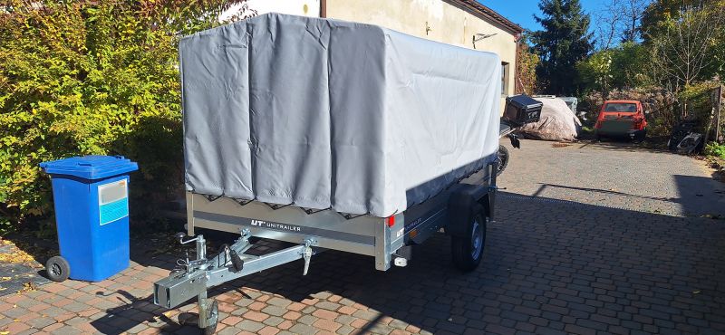 Opinie o Przyczepka jednoosiowa 264x150 UNITRAILER GARDEN 265 KIPP ze stelażem H-1100 i pokrowcem szarym